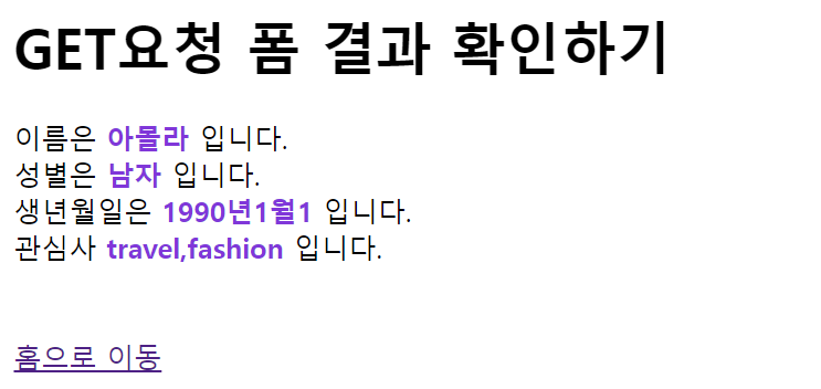 - 정적으로 보낼 때는 form 태그에 action과 method 써주기