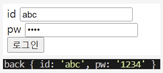 그리고 Post 방식의 data로 data를 보내면 백엔드에서는 req.body 형식으로 받는다.