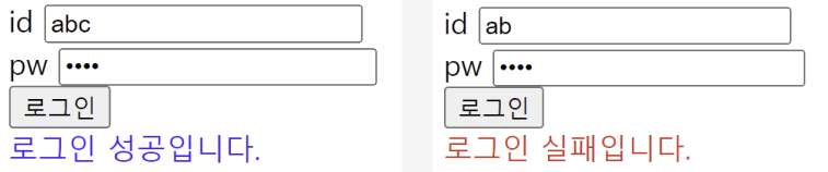 오늘 해볼 실습은 아직 데이터베이스가 없기 때문에 임의의 아이디와 비밀번호를 부여해서 사용자가 입력한 아이디와 비밀번호가 같으면 로그인 성공 메시지를 띄우고 틀리면 로그인 실패 메시지를 띄우는 것이다.